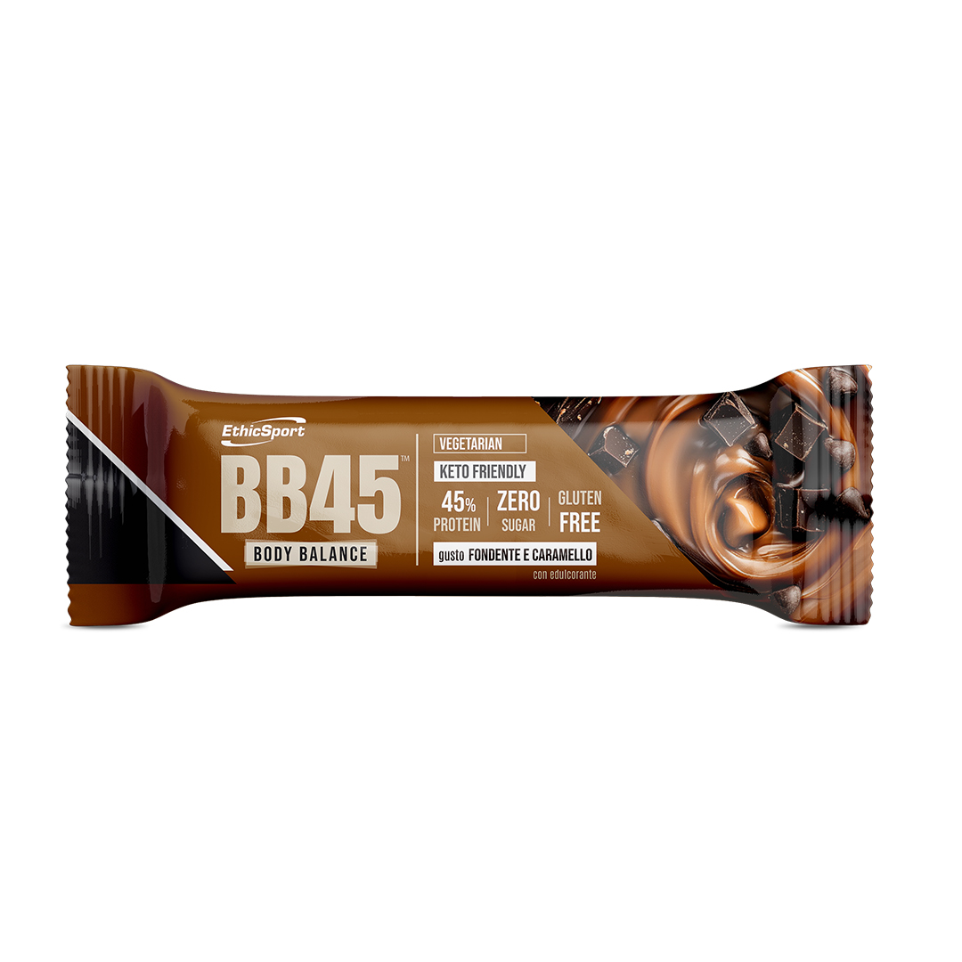 BB45 – Body Balance μπάρα πρωτεΐνης με 45% πρωτεΐνη γάλακτος, μηδενικά σάκχαρα, κατάλληλη για κετογονικές δίαιτες, χορτοφαγική και χωρίς γλουτένη.